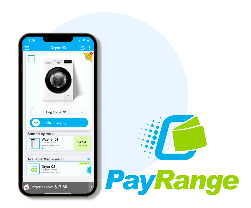 Pay with quarters, or you can skip the coins and pay right from your phone! Our washers and dryers are equipped with the PayRange app, making it fast and easy to start your machine with a simple “slide right”.